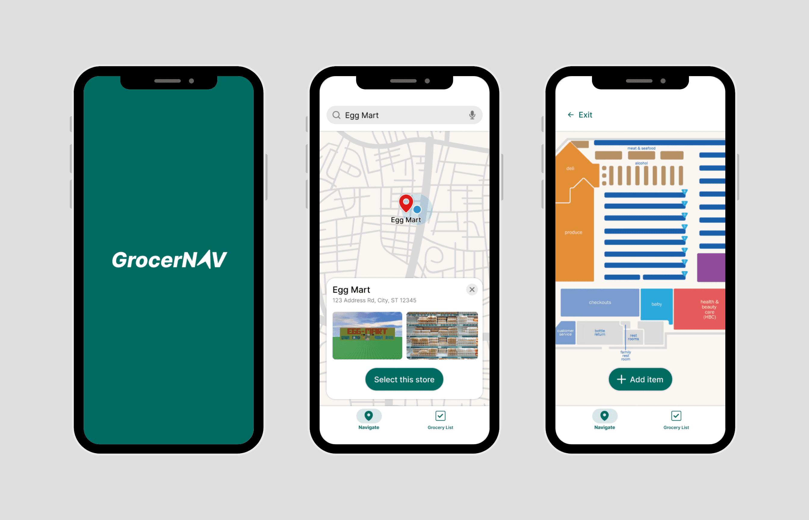 Grocery store navigation app to help users locate their items.