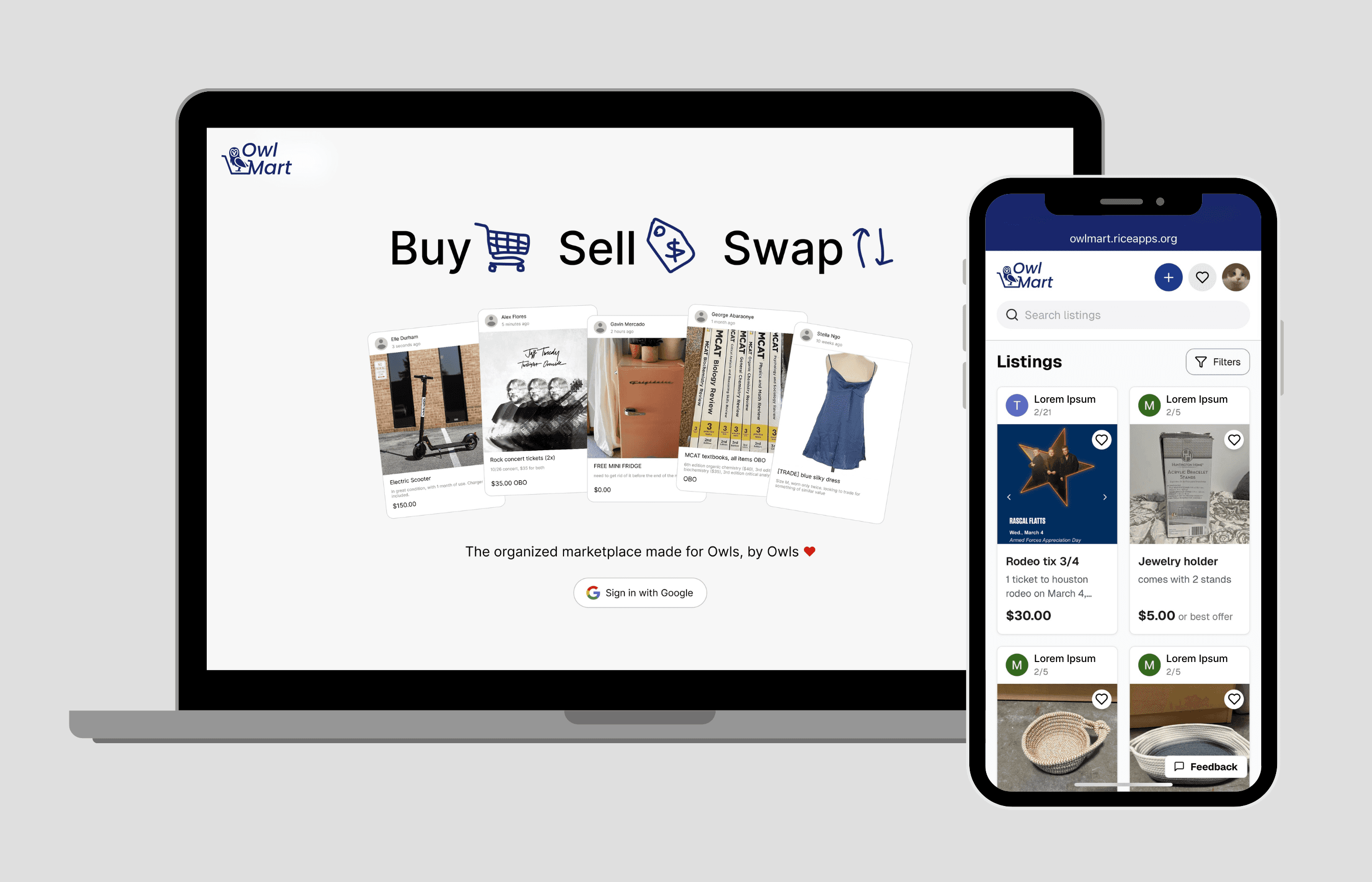 Rice University's first secure marketplace to browse and post listings.