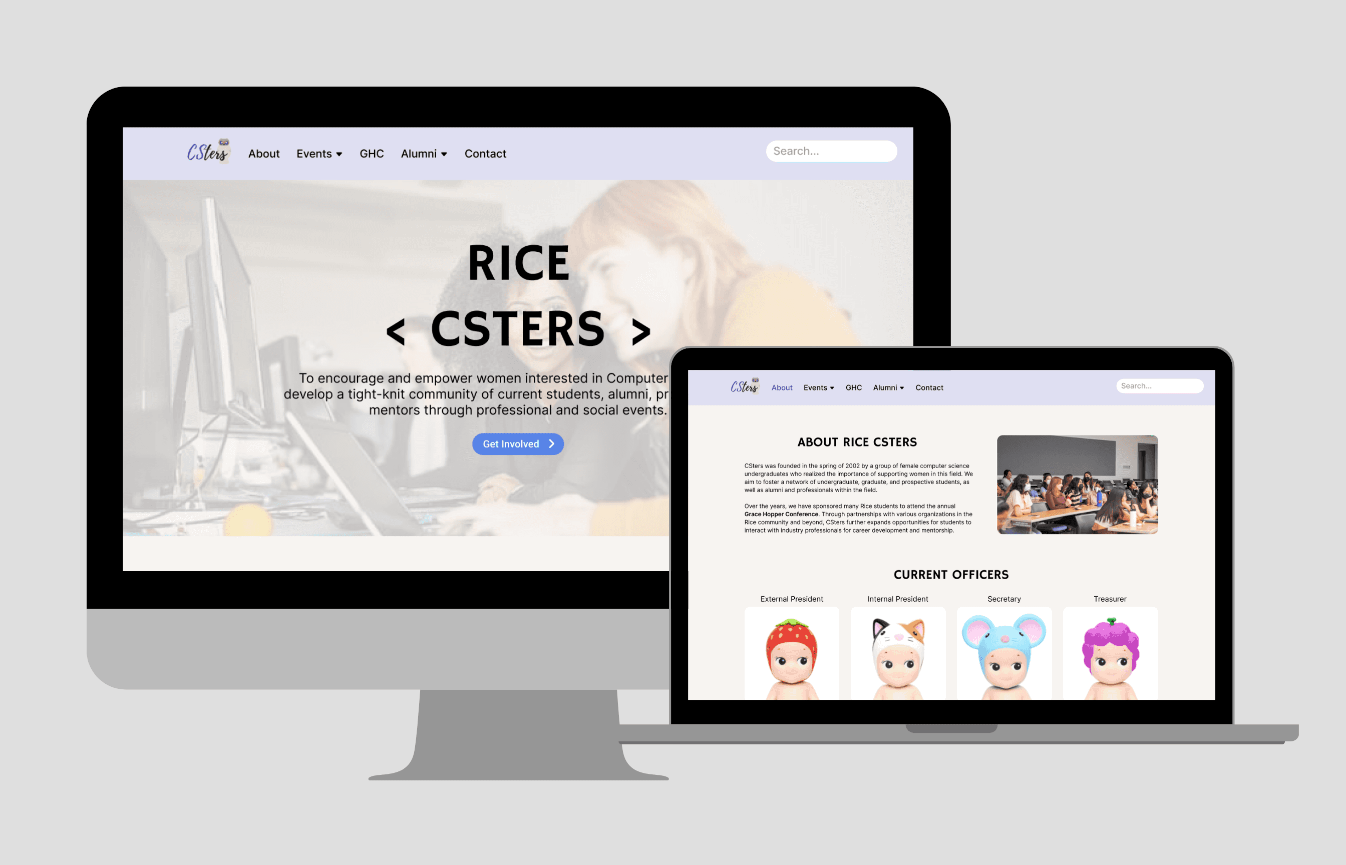 Redesigned website for Rice University's women-in-CS organization.