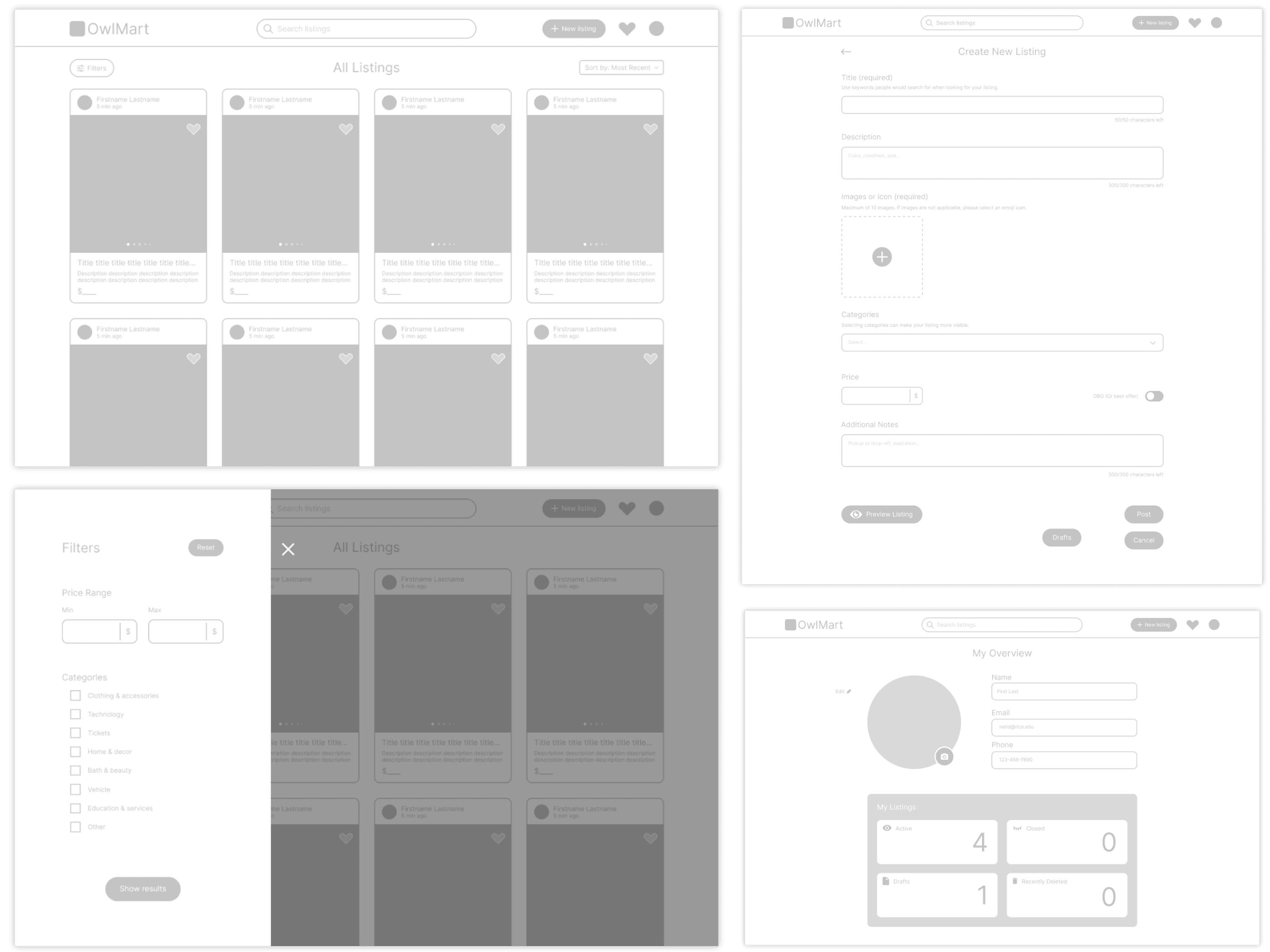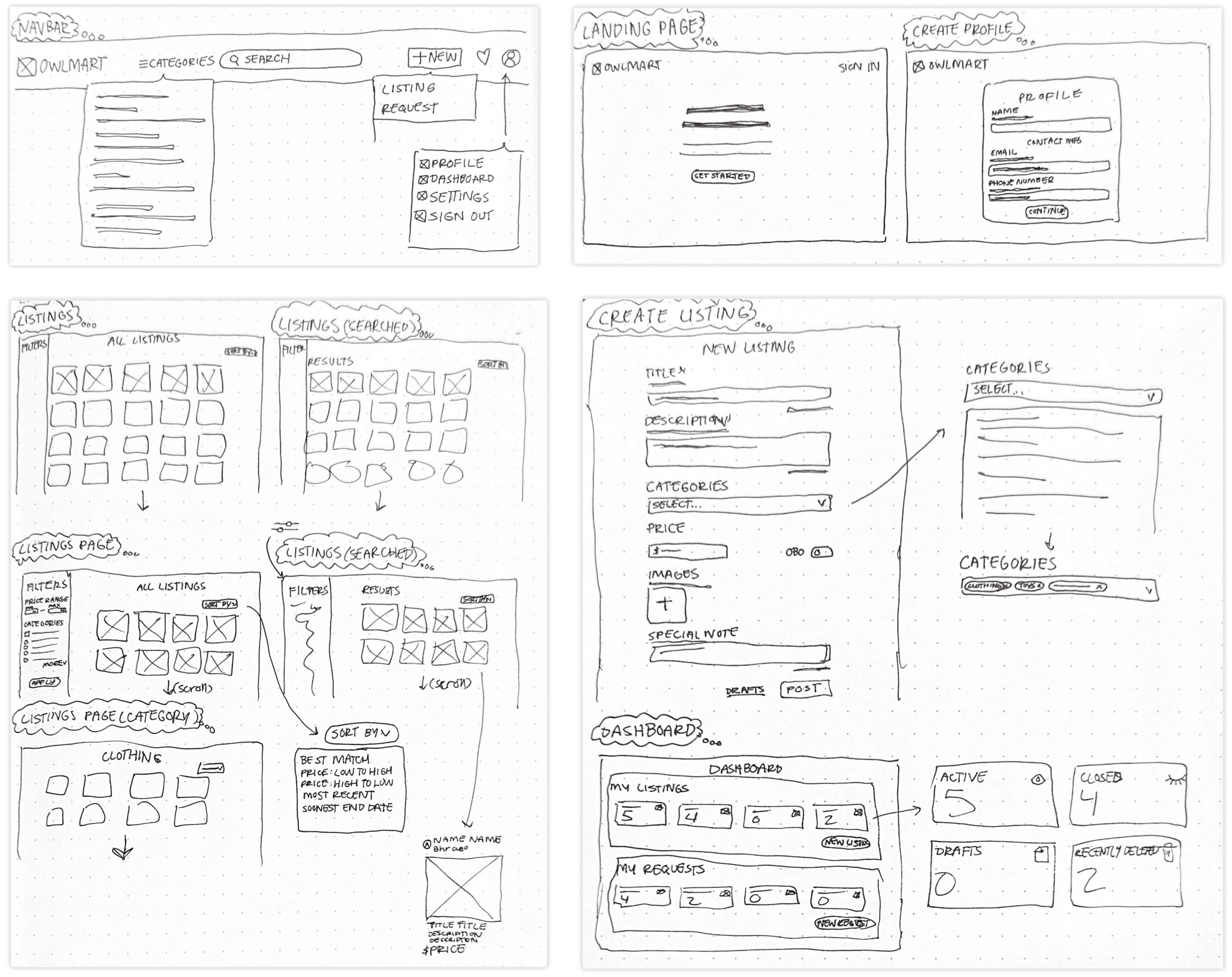 Since then, I've been wireframing some post-MVP features, including buyer requests and a messaging system. OwlMart is currently in launch phase, with our team working hard on marketing across campus.