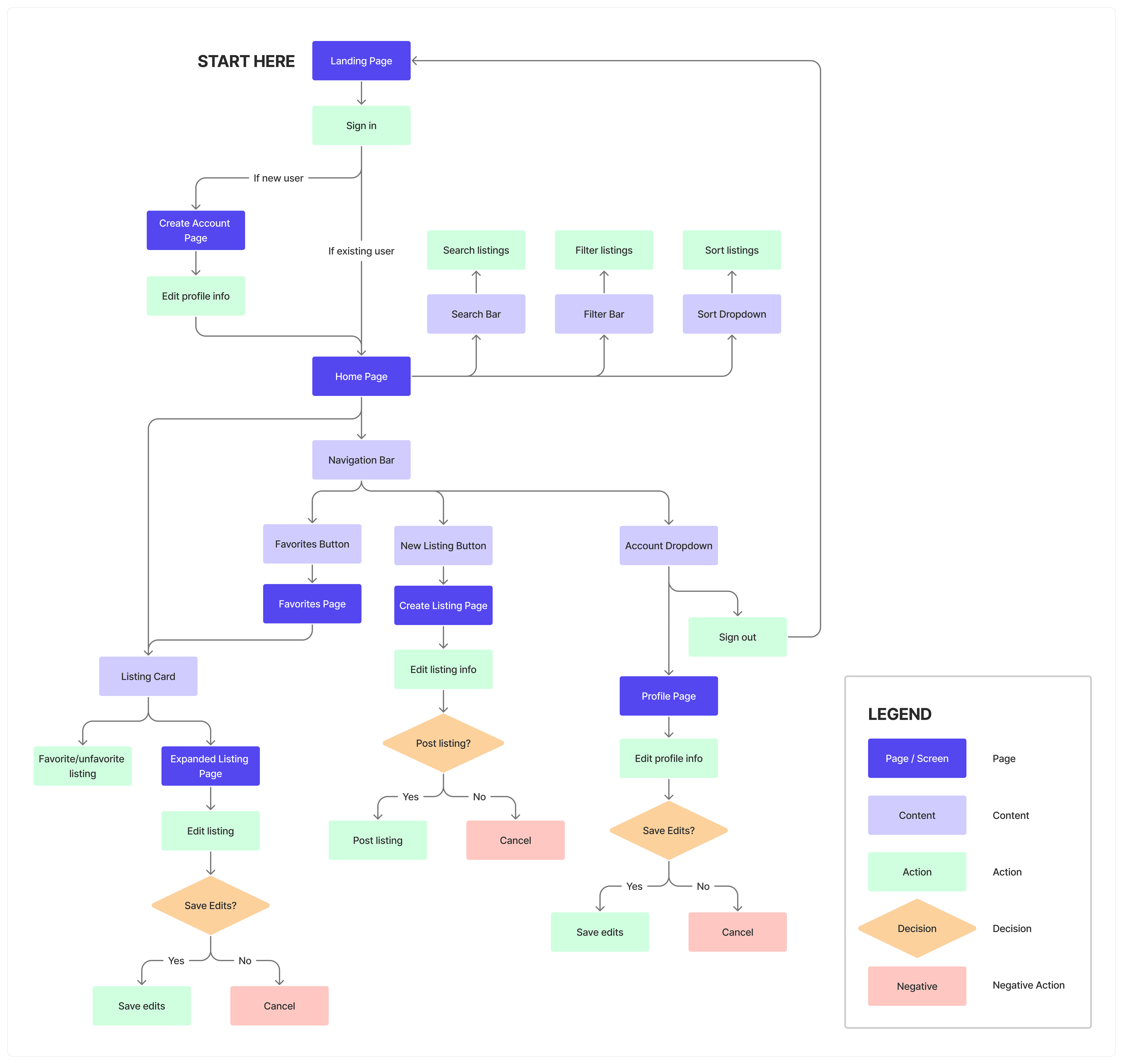 Based on these insights, I created a user flow map covering all the MVP features to guide my design process: