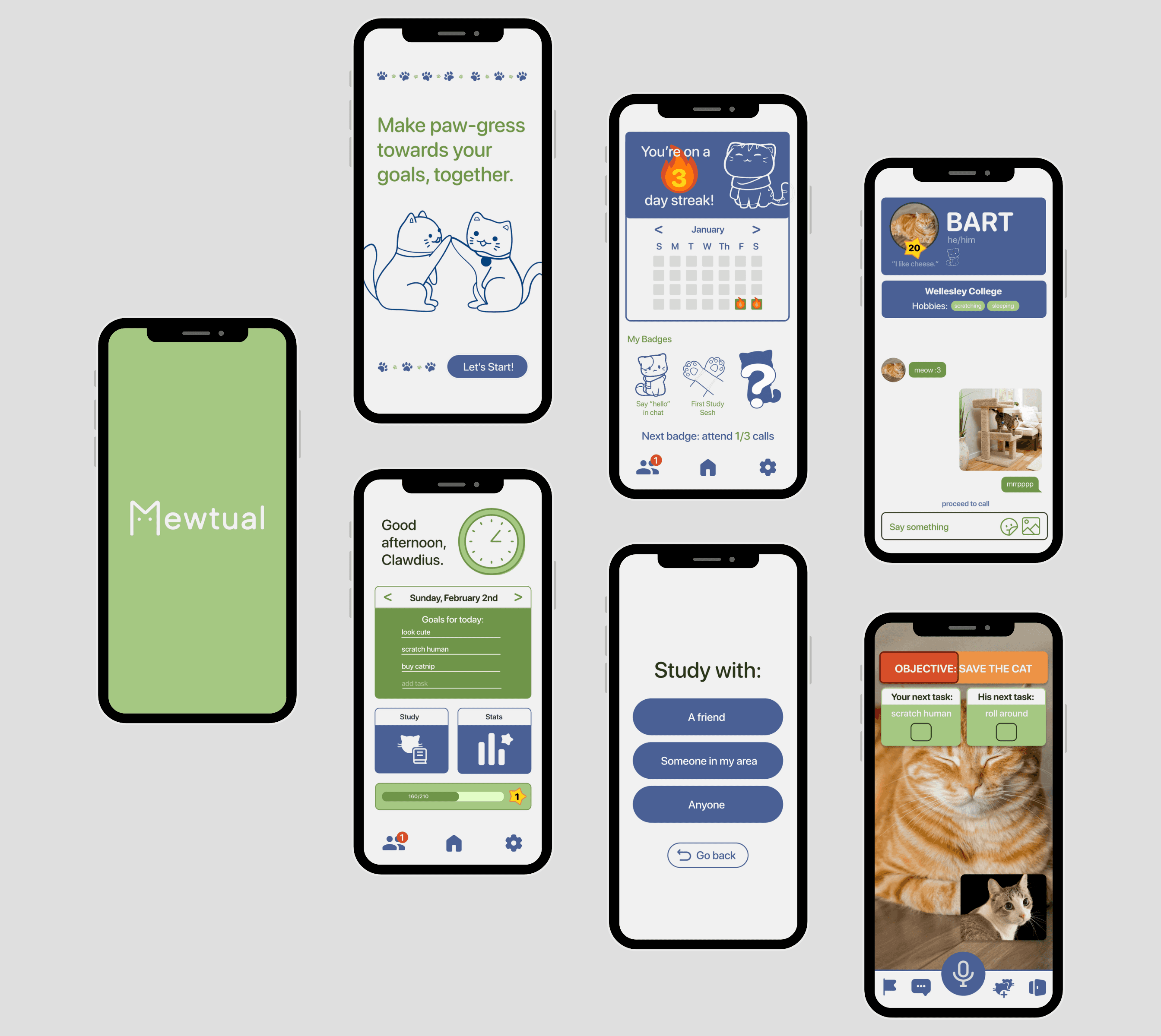 Mewtual is a gamified, cat-themed study buddy app that helps people stay motivated, connected, and accountable when studying or working. By combining real-time collaboration, gamified incentives, and a lighthearted cat theme, Mewtual transforms productivity into an engaging and rewarding experience.